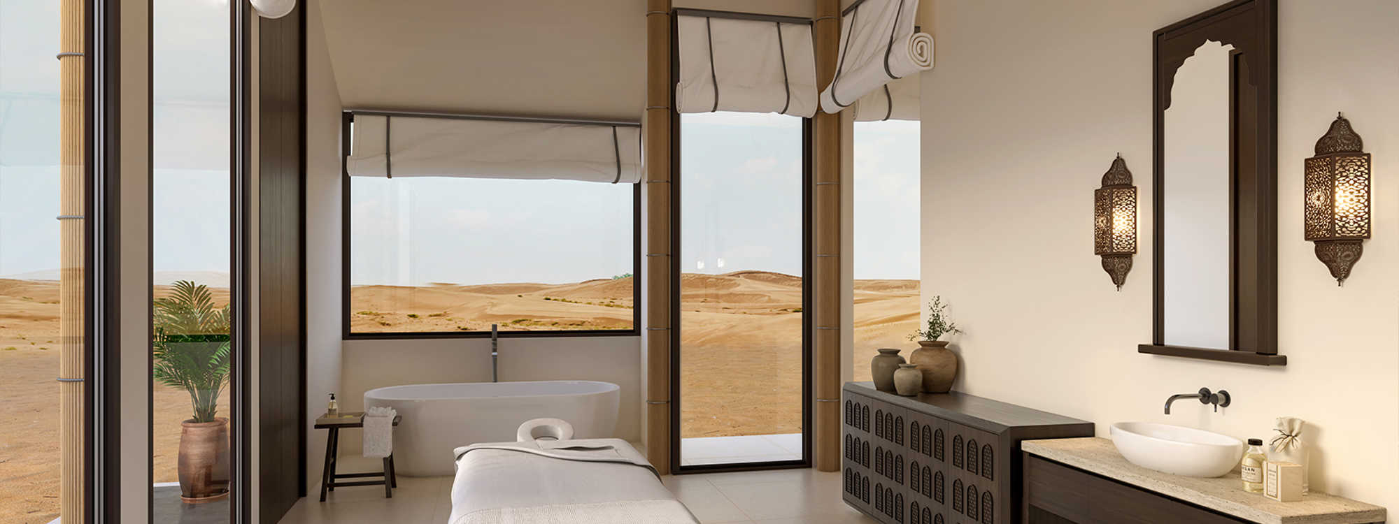 Each of our treatment tents has been painstakingly crafted to instil a sense of peace, comfort, and simple luxury - including one dedicated to couple's treatments. Draw the curtains for utter privacy or throw them open to gaze upon the endless dunes.